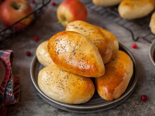 Подавайте тёплыми, дополнив любимыми напитками: молоком, какао или компотом. Наслаждайтесь вкусом домашних творожных пирожков с ароматной яблочной начинкой!