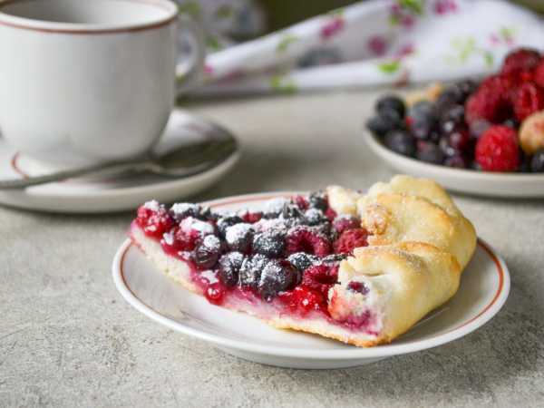 Подверните края творожного теста наверх, частично прикрывая ягоды, и посыпьте сахаром начинку и тесто. Выпекайте галету в разогретой до 180 градусов духовке минут 30-35.
