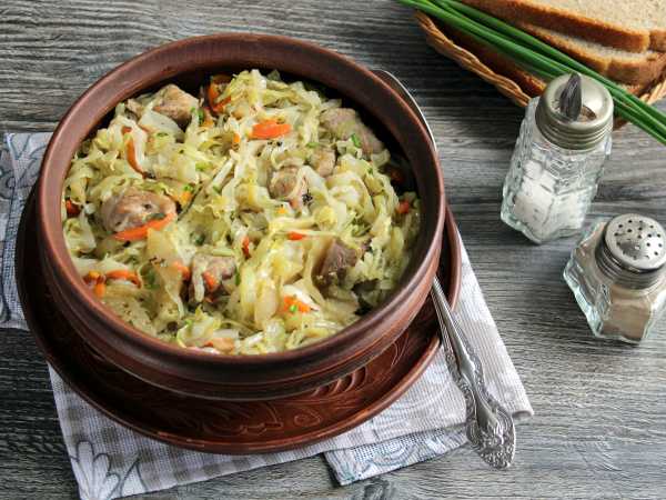 Первым делом нужно приготовить мясо, т.е. нарезать мякоть или порубить, если оно на кости. Затем будет тушение в небольшом количестве воды около часа, солить советуется примерно через полчаса.