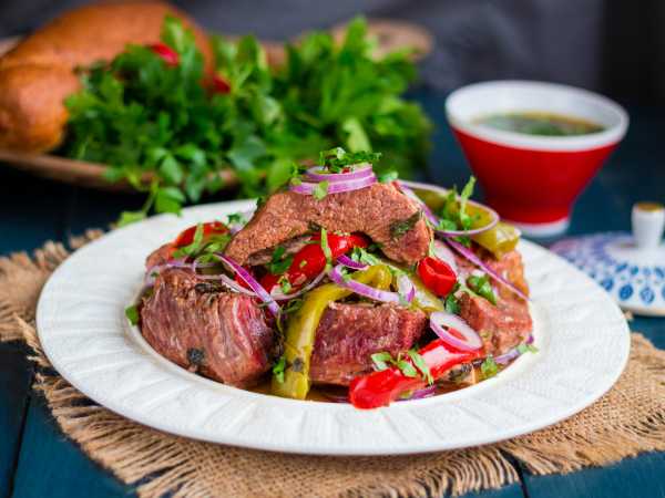 Общее время приготовления этого варианта хашламы зависит от сорта мяса (лопатка, окорок, рёбрышки), а из ягнёнка – всегда быстрее.