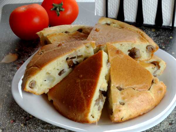 Заливной пирог с опятами готов. Достаньте его из формы, охладите, нарежьте и подавайте к столу.
