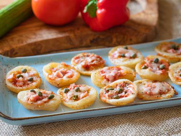 Готовую пиццу переложить на тарелку или разделочную доску и нарезать на кусочки.