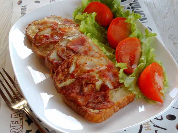 В сковороде разогреть растительное масло и обжарить ломтик хлеба с одной стороны.