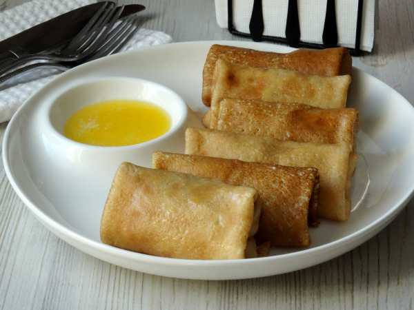 Перед подачей эти блины можно слегка обжарить на сливочном масле с двух сторон.