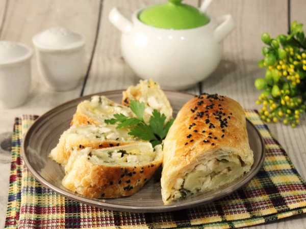 Выпекать штрудель со щавелем при температуре 180 градусов до румяного состояния, у меня ушло 13 минут.