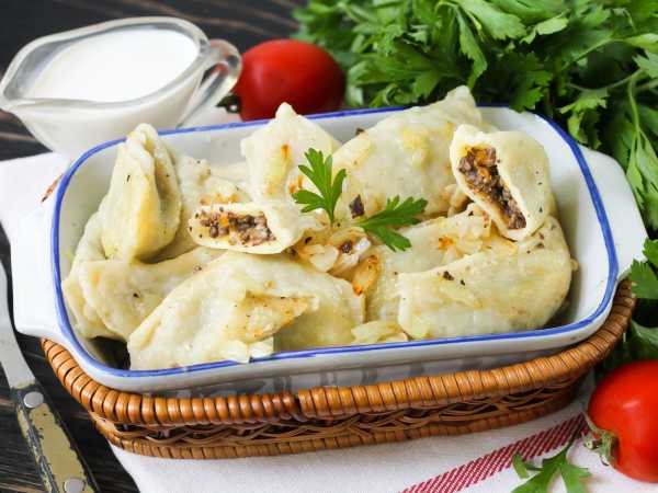 Вымешивайте тесто до гладкого состояния в течение 10 минут. Готовое тесто прикройте полотенцем или переложите в целлофан и дайте ему отдохнуть 20 минут. Этот рецепт теста универсальный, он подойдет не только для вареников, но еще для пельменей, мантов и ханума.