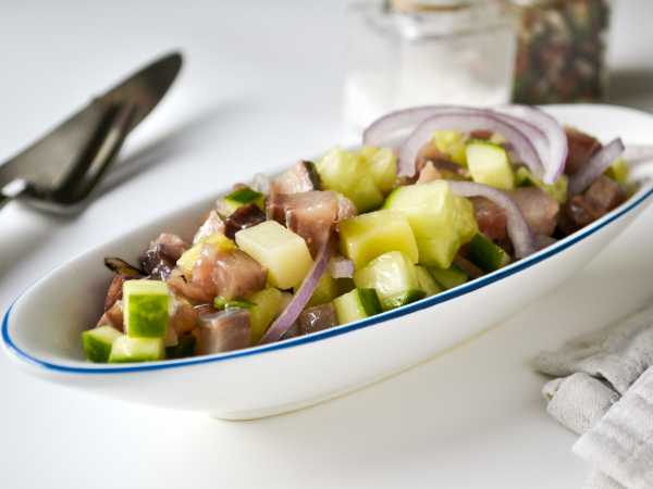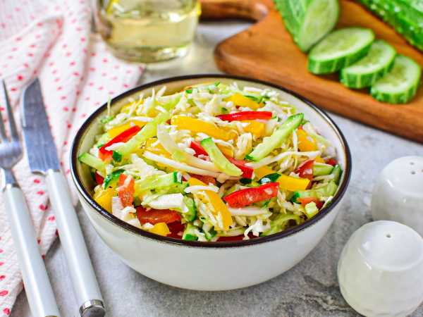 Салат из свежих кабачков и огурцов готов. Подавайте на закуску или в качестве гарнира.