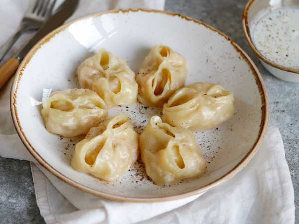 В сковороде разогрейте масло на среднем огне (7 из 9). Выложите манты, обжарьте донышки до золотистого цвета. Сперва обязательно нужно поджарить тесто снизу, чтобы оно от влаги не размокло и не порвалось.