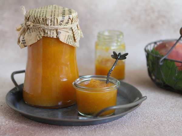 В течение одной минуты, на максимальной скорости работы блендера, измельчите фрукты до консистенции пюре. Если любите джем кусочками, то пробивайте импульсно по 4-5 секунд несколько раз.