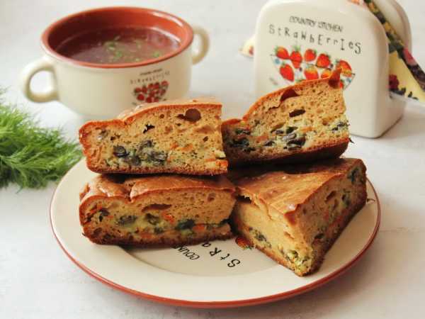 Дать пирогу немного остыть, а затем нарезать и можно угощаться.