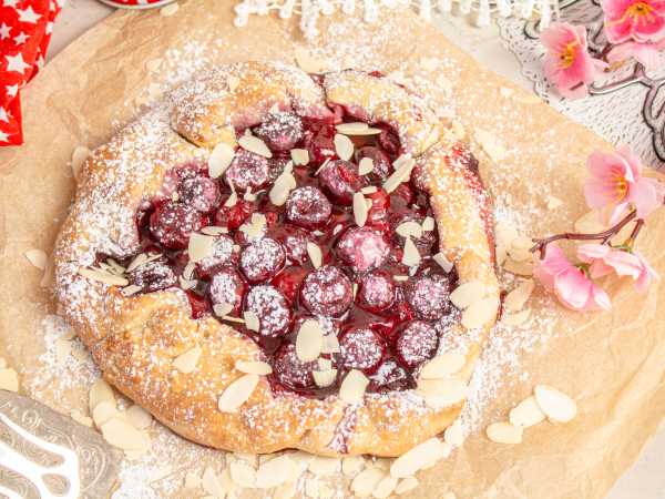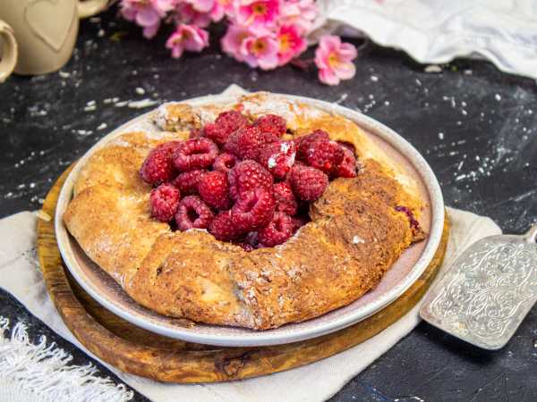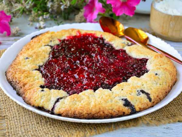 Сверху посыпьте ягоды сахаром или сахарной пудрой. Заверните края теста на начинку и сформируйте круглую галету. Выпекайте в духовке при 180 градусах примерно 30-40 минут. Ориентируйтесь по своей духовке.