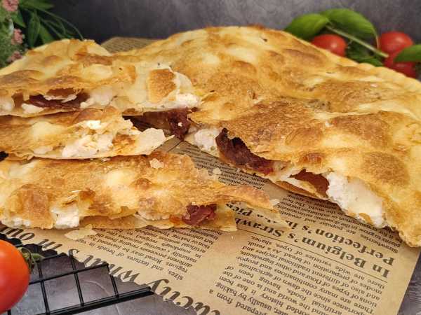 На противне с ковриком или бумагой для выпечки размять тесто в лепешку.