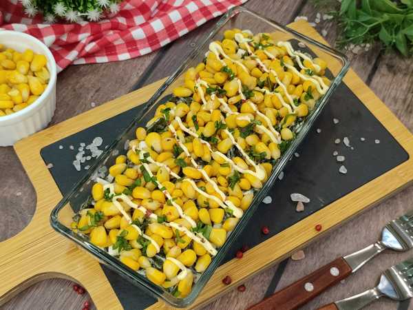 В самом конце соус слегка выпарится, кукуруза немного «втянет» его в себя. Зерна станут мягкими и сменят свой цвет.