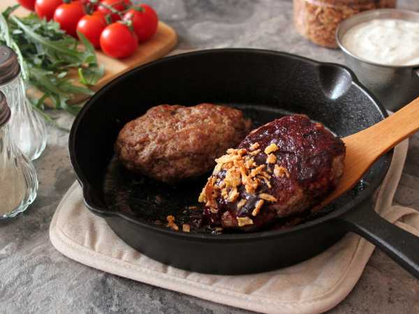 Соберите все необходимые продукты для приготовления говядины с подливой на сковороде.