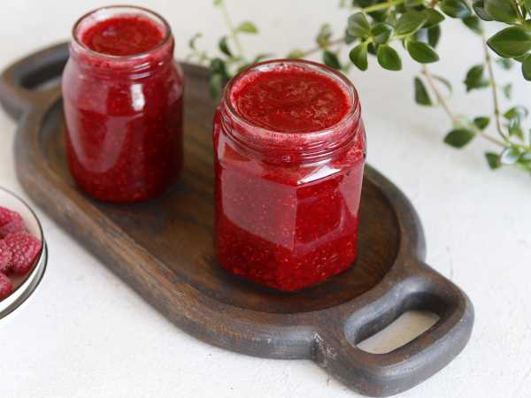 Для приготовления малинового варенья понадобятся ягоды и сахар.