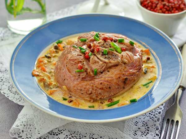 Мяско получается нежным, мягким, сочным и даже немного розовым внутри.