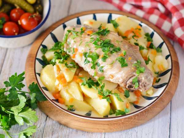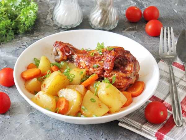 Время приготовления я указываю примерно, вы же ориентируйтесь по готовности так: проткните плечо индейки в самом толстом месте, и если мясо мягкое, то блюдо готово, можно снимать сковороду с огня.
