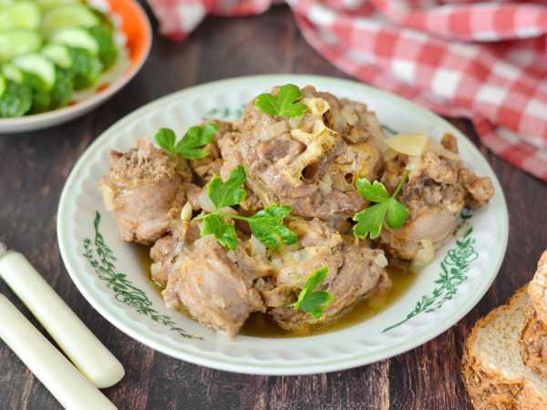 Также иногда я практикую такой вариант: с готовых плечиков индейки срезаю всё мясо и возвращаю его в соус. Так удобно его есть, не прибегая к разделке и нарезке за столом.
