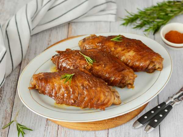 Периодически переворачивайте плечи индейки с бочка на бочок, чтобы каждая сторона оказалась в соусе. Также можно поливать их соусом сверху, чтобы мясо напиталось вкусами и ароматами.