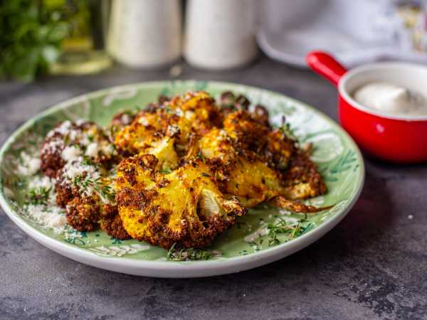 Половинки перцев уложите в чашу аэрогриля на решетку и запекайте при температуре 180 градусов 7 минут.