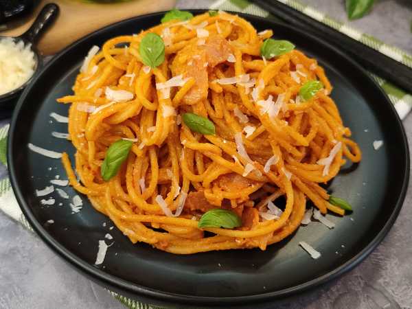 Подавать пасту с луком-пореем и сливками лучше сразу к столу. Блюдо получается настолько вкусным, что вы точно не откажетесь от добавки)