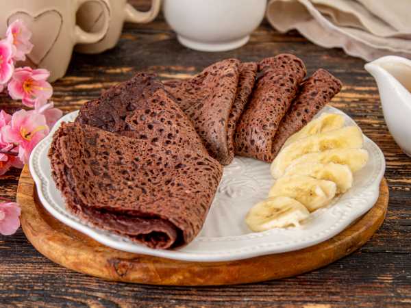 Подайте их к столу с ягодами или сладкими соусами, вареньем, различными напитками. Особенно вкусны заварные шоколадные блины с молоком или ароматным чаем.