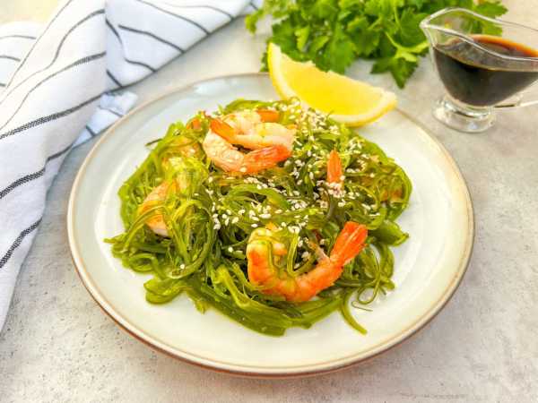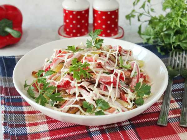 Все хорошо перемешать, и салат с чукой и снежным крабом можно подавать.