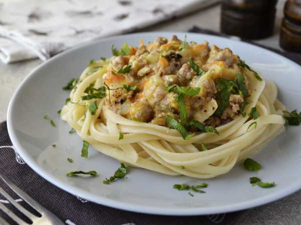 Накрыть сковороду крышкой и потомить соус на среднем огне несколько минут.