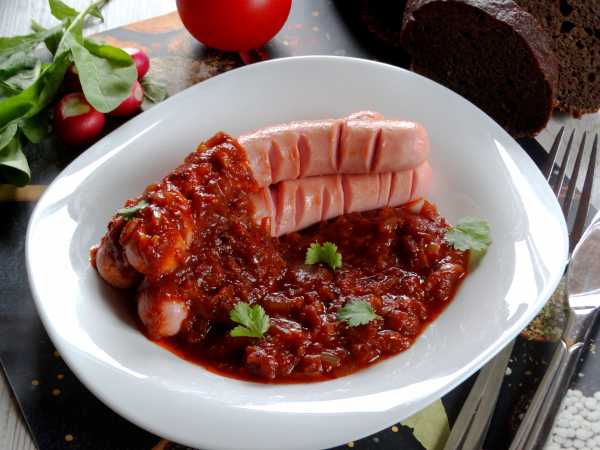 Сардельки в томатном соусе на сковороде готовить будем с такими ингредиентами.