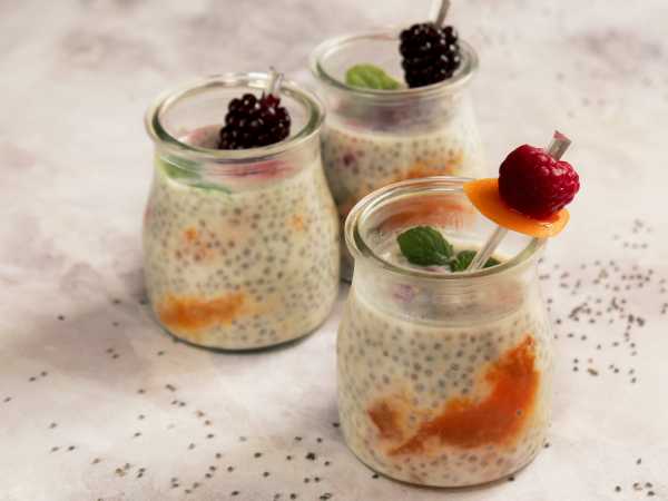 За ночь семена чиа разбухли, жидкая шоколадная масса превратилась в густую желеобразную.