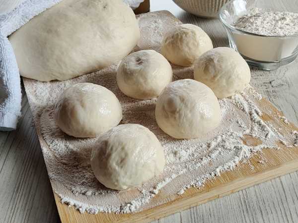 В конце замеса миску смажьте слегка маслом, уложите тесто, накройте крышкой (или пленкой), оставьте отдохнуть и подняться в теплом месте. Время подъема зависит от температуры в помещении, у меня тесто подошло минут за 30, после подъема его обминаем и даем подняться еще раз.