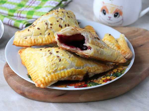 Кисточкой смажьте края каждой слойки. Поставьте ватрушки из слоеного теста с малиной в разогретую до 200 градусов духовку на 15-20 минут.