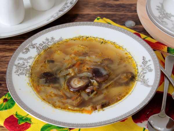 Когда вода с грибами закипит, добавляем в кастрюлю картофель и варим ещё минут 10, пока картошка не станет мягкой.