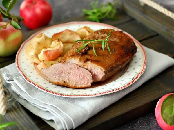Утиные грудки с яблоками в духовке готовы. Сервируйте их с пылу с жару.