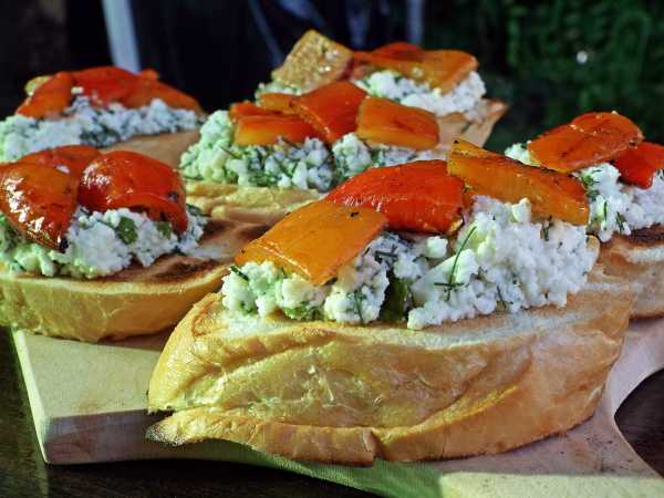 Украсьте брускетты с каперсами свежей зеленью и подайте их к столу.