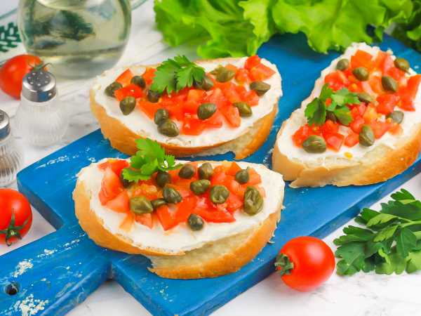 Продукты для приготовления брускетт с каперсами - перед вами!