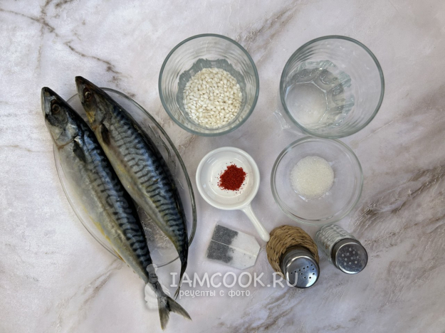 Соберите по списку все необходимые ингредиенты для приготовления скумбрии горячего копчения в духовке. Если используете замороженную рыбу, разморозьте её естественным образом в холодильнике или при комнатной температуре.