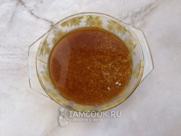 Для копчения подготовьте чайную заварку и рис. Пакетик чая положите в чашечку риса и залейте кипятком. Перемешайте содержимое чайной ложечкой.