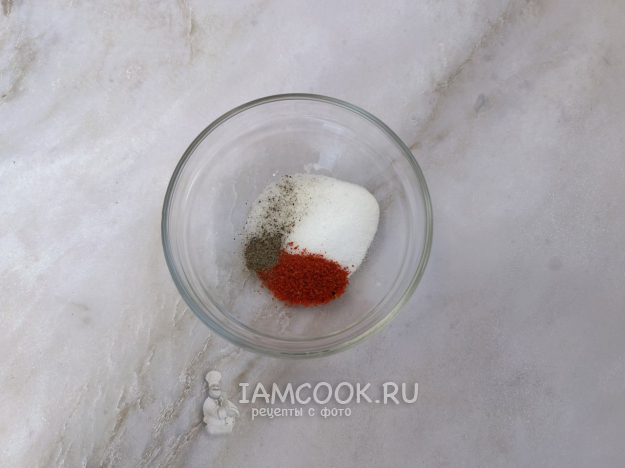 Смешайте сахар, соль и копченую паприку.