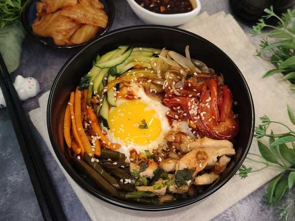 Соберите ингредиенты для приготовления корейского блюда пибимпаб с курицей.