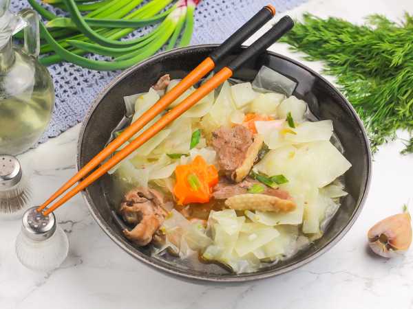 По желанию при подаче добавьте в суп зеленого лука или кинзы, чуть сбрызните кунжутным маслом.