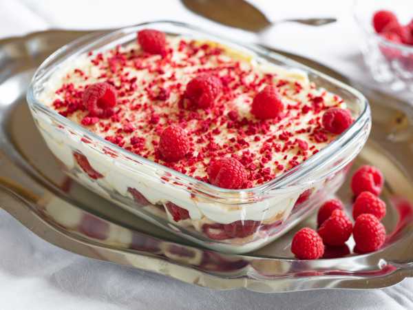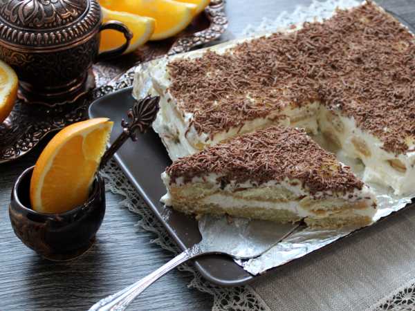 Когда жидкое желе полностью остынет, но ещё не начнёт застывать, осторожно зальём им форму с тирамису, стараясь не повредить кремовый рельеф. Поместим лимонный тирамису в холодильник вплоть до полного застывания.