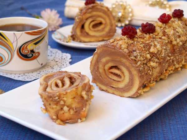 Для украшения смазать поверхность рулета растопленным шоколадом со сливочным маслом или украсить по желанию.