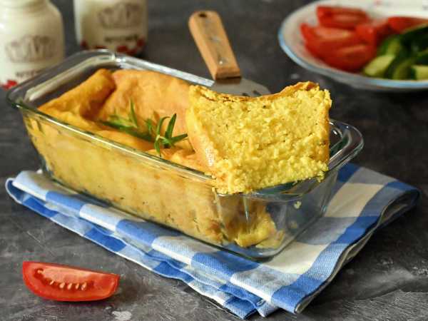Запеканка из поленты готова. Дайте ей постоять примерно 10 минут, чтобы она немного стабилизировалась, и можно нарезать на порции.