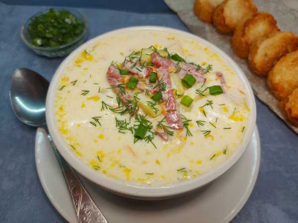 Сырный суп с брюссельской капустой готов.