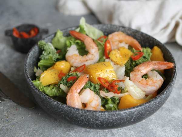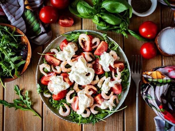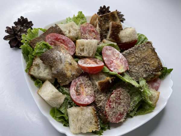 Соберите все продукты по списку и будем готовить салат Цезарь с романо и креветками.