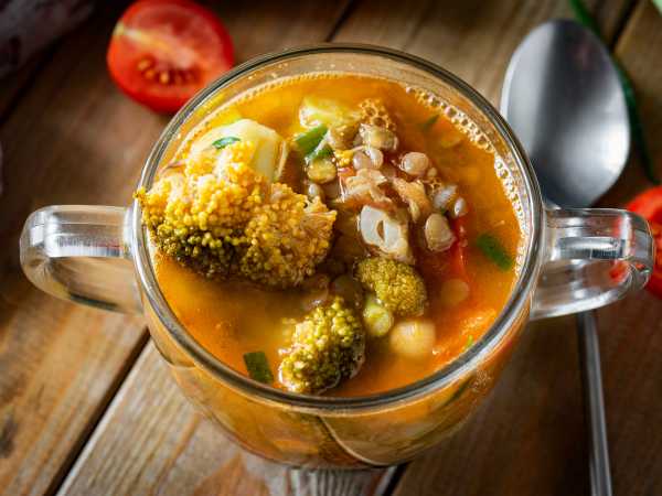 Суп, приготовленный на бульоне, получается вкуснее. Но если нет под рукой бульона, то готовьте на воде. Я готовила суп на костном бульоне. Готовлю я такой бульон заранее, в кастрюле или мультиварке. Как приготовить такой бульон в мультиварке, рассказывала ЗДЕСЬ.