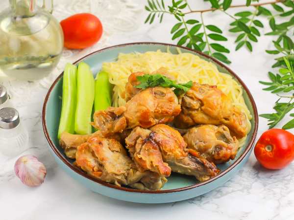 Выложите куриные плечики с картофелем на тарелки и подайте к столу горячими. Особенно вкусны они с квашеными овощами.
