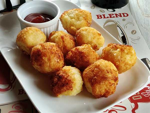 Готовые картофельные пончики на дрожжах выкладывать на тарелку с салфеткой.