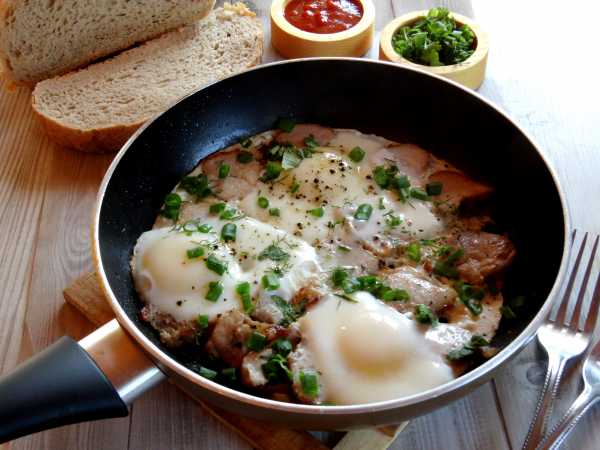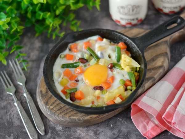 Продолжайте готовить на среднем огне, аккуратно перемешивая массу, до нужной прожаренности яиц. Слишком долго жарить скрэмбл не стоит, т.к. яйцо должно оставаться нежным, чуть влажным, не пересушенным.